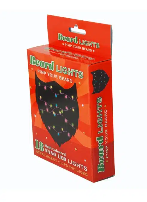 Remove lights from packagine and affix the light string to your beard with the crocodile clips provided. Use on clip for every 9 cm of length. Switc on and change the light mode to your preference.