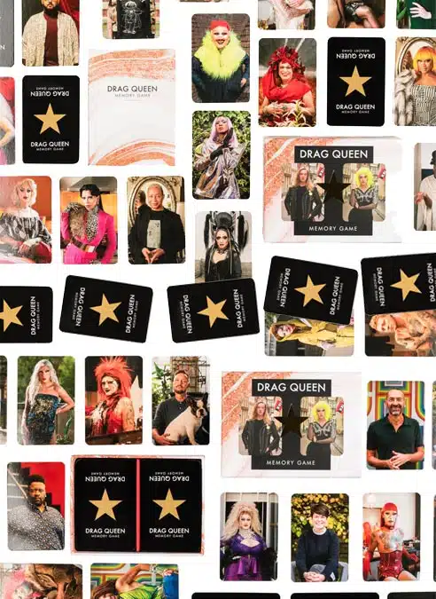 Meet the 30 queens in and out of drag in Drag Queen Memory Game: a diverse, fierce and fabulous game. The vibrant photographs by Dim Balsem explore the different clothing styles, make-up and characters that represent the wide array of subcultures within the drag world. The before-and-after photos are taken in the same environment to allow easier recognition when picking sets of two.
