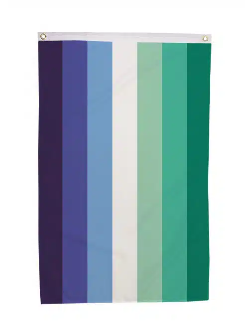 The gay male pride pride flag consist of 7 horizontal stripes in different hues of blue and green.