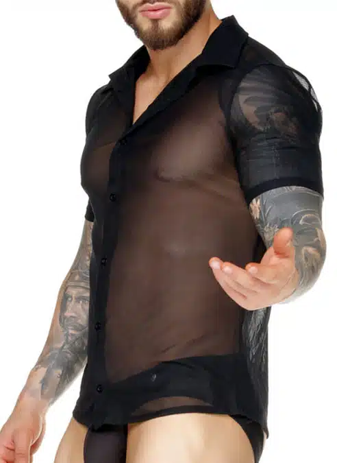 Black mesh stretch button down shirt for those fancy evenings when you want to feel extra sexy, or just a night out at the bar.