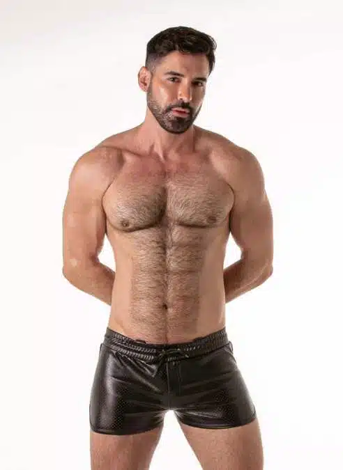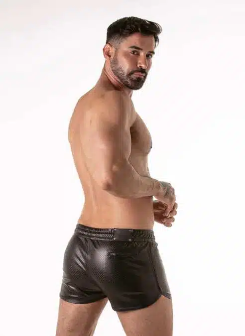 At 300 words, this description captures the essence of desire woven into every stitch. The Locker Gear Punch Hole Leatherette Running Short isn’t just apparel—it’s an invitation to own the room, to move with purpose, and to revel in the heat of every moment. Slip them on, and let the world feel your pulse.