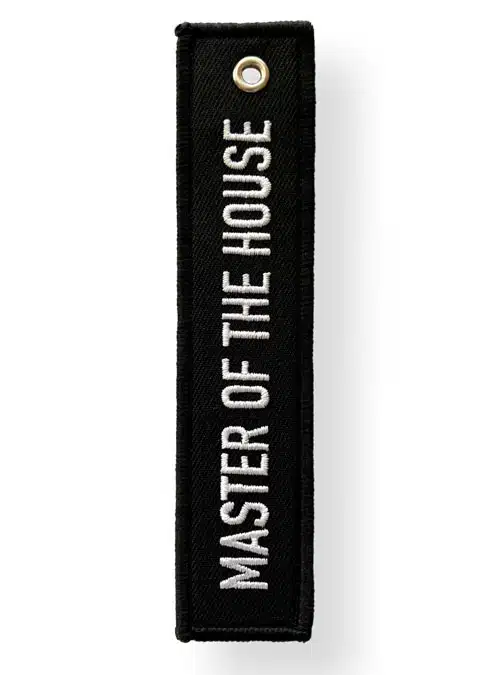 The premium leather keyring is enhanced with embroidery and features a branded polished flat-wire. Includes the “Master of the House” logo tag.