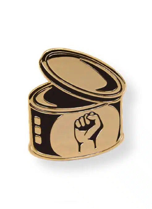 Hard enamel pin in matt black and gold.