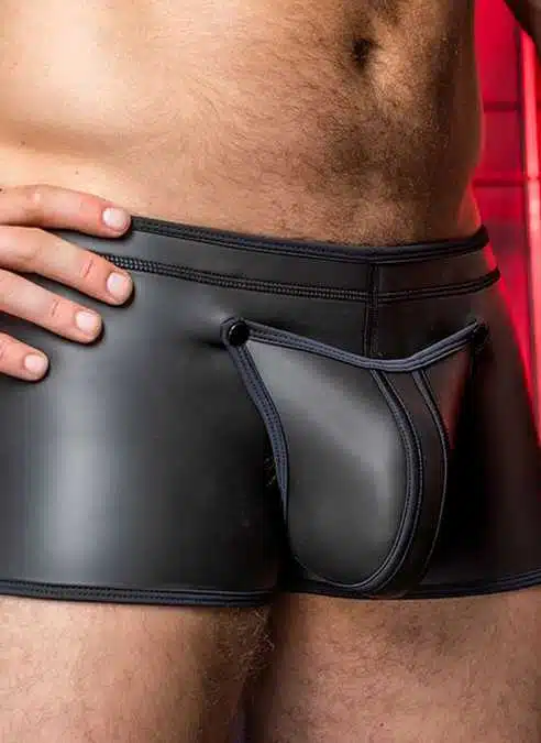 Perfect for a night out dancing with the boys. When things start to heat up the rear zip and removable codpiece make you full access. A fun new design from the Mr. S Neoprene Production Department.