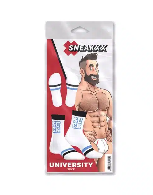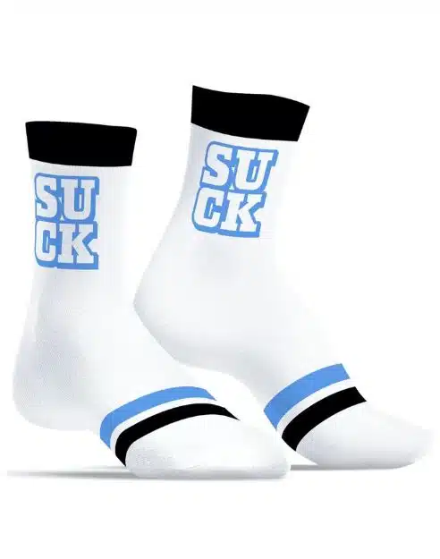 Now you can show everyone what makes you tick and what you’re into. Let them know you love to SUCK! The SNEAKXX sexy socks collection has the right statement for everyone and should not be missing from any fetish wardrobe.
