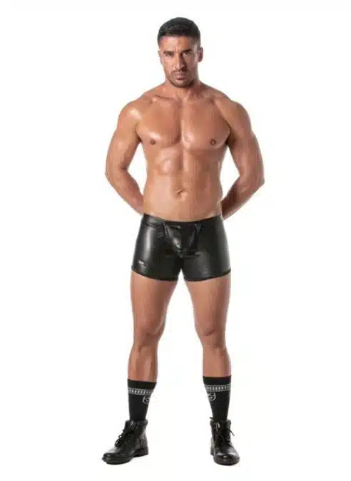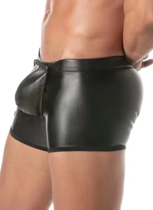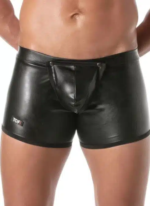 ToF Paris incredibly sexy easy access boxer means you can enter the party…and then really enter the party, without even taking anything off. Smooth leatherette that feels excellent on the skin.