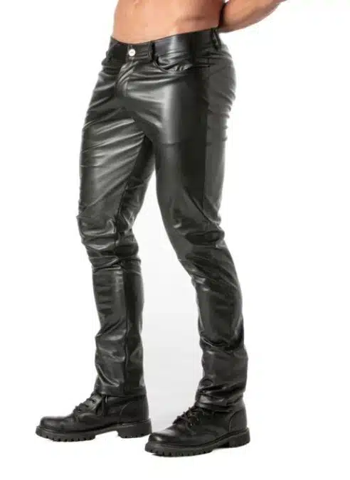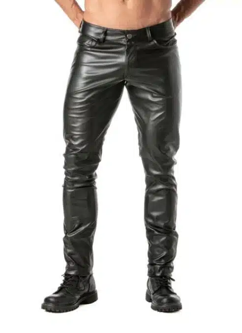 Simple, yet very effective. These leather-look pants from ToF Paris hug your body, show your muscles and make you feel like a sexy rock star – or whatever your imagination brings. High quality vinyl leatherette will last many years.