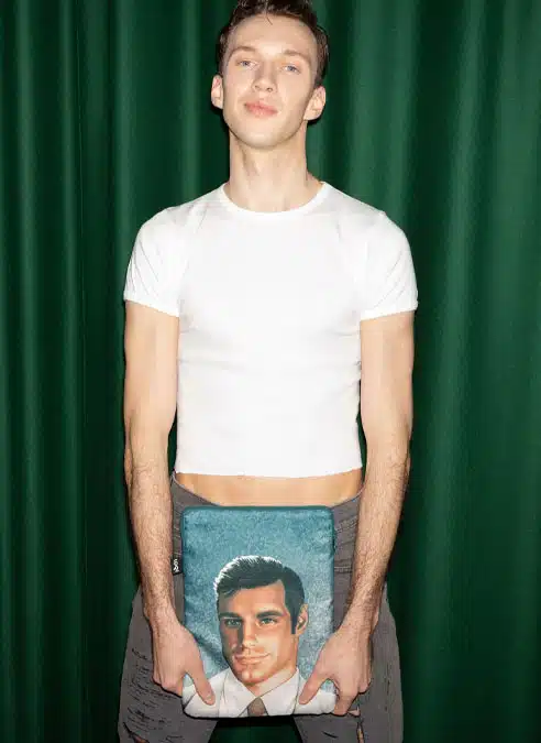 Tom of Finland, a cult illustrator. By day he crafted campaigns of happy heterosexual couples buying soft drinks and laundry detergent for advertising. By night, he was otherwise occupied. Bulging muscles. Throbbing members. Motorcycles. Gay pride. Any time a stylist puts a young pop star in a leather biker cap for a magazine shoot, the impact of Tom of Finland is not far-off. Day & Night artworks are depicted on the recycled laptop sleeve.