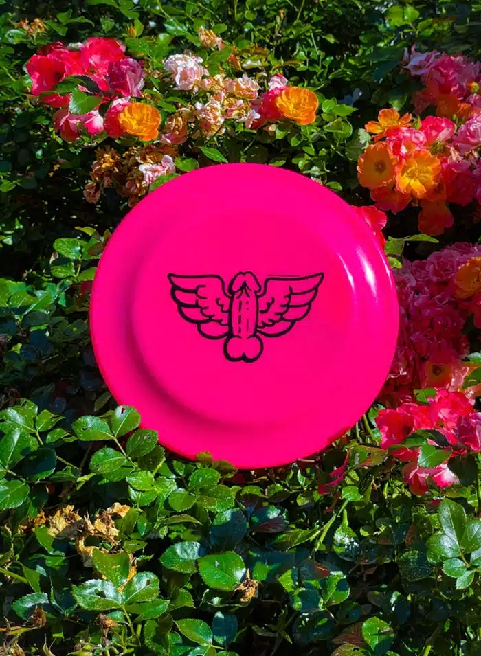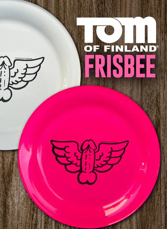 Up in the sky…It’s a bird, it’s a plane…it’s a FYING COCK!?! Yup! It’s the official Tom of Finland Frisbee. Just in time for summer! That’s right — now you can toss Tom’s winged penis through the park, on the beach, even in your mom’s back yard! This penis comes in two colors: white and hot pink. Get yours today!