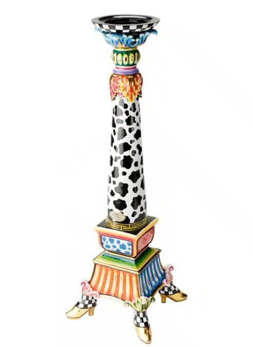 This majestic candlestick is an excentric collection of prints on heels.